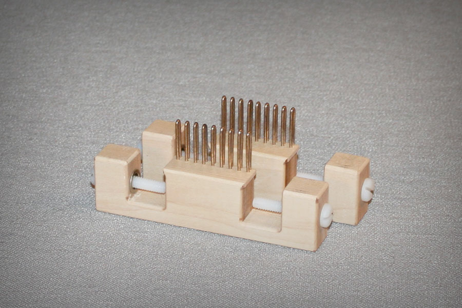 These 9 peg fixed loom end pairs are an extra fine gauge with 18 total pegs. Even smaller than our Fixed 1 loom. This loom is different than our others looms as it only has pegs, no pins! Pegs are the turned compact style and set at 3/16" from center to center. This loom gauge matches the gauge of the former DA EFG Sock Loom. You can get an average of 7-8 stitches per 1" on this loom! Use these end pairs with our F0 Extra Fine Gauge long or short looms.